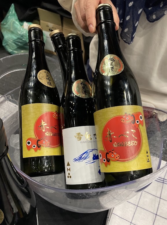 Tous les sakés Ninki sont réalisés à partir de kôji fait maison cuit dans des bouilloires japonaises traditionnelles et sont fermentés dans des fûts de bois. Le respect des traditions de la maison vieilles de 300 ans n’empêche absolument pas la nouvelle génération de s’adresser à un public plus jeune avec des sakés modernes autant dans leur contenu que leur contenant. Des bouteilles aux designs géométriques, colorés et contemporains ornent le stand. Et parmi celles restées au Japon que l’on a tout de même pu voir dans le catalogue, nous avons même aperçu des designs d’étiquettes en 3D inspirés de Godzilla !